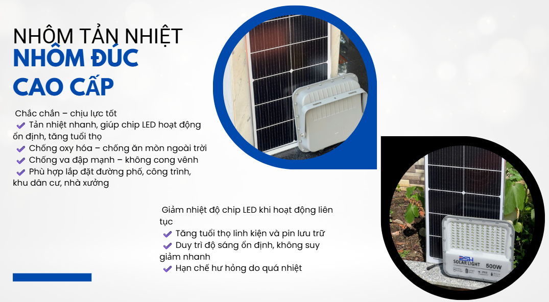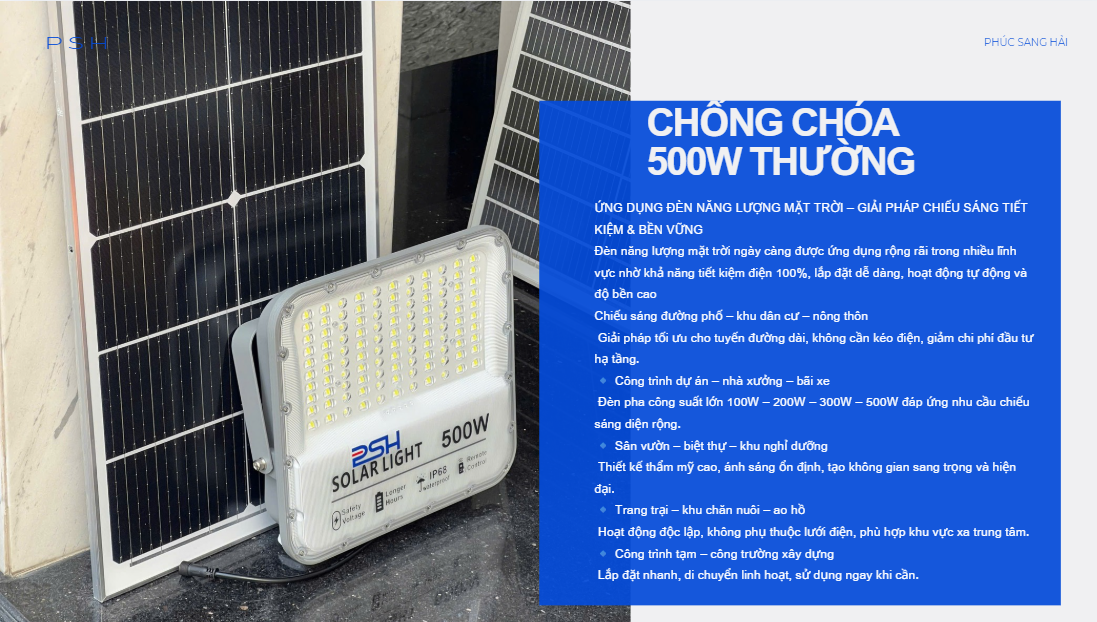 Như vậy, các ưu điểm của ĐÈN CHỐNG CHÓA 500W BẢN THƯỜNG không chỉ giới hạn ở chất lượng chiếu sáng xuất sắc, khả năng linh hoạt trong điều khiển và tính năng tự động. Nó còn giúp tiết kiệm năng lượng và tài nguyên thông qua sử dụng năng lượng mặt trời, đồng thời hiệu quả trong việc giảm thiểu ô nhiễm và đóng góp tích cực vào việc bảo vệ môi trường.