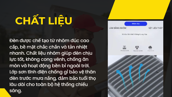 Thân đèn làm bằng hợp kim nhôm đúc cực kỳ chắc chắn