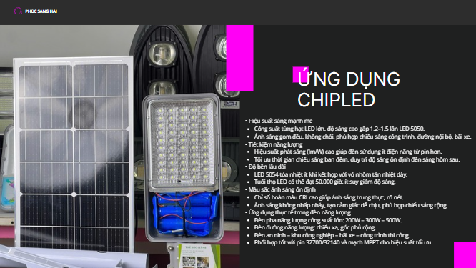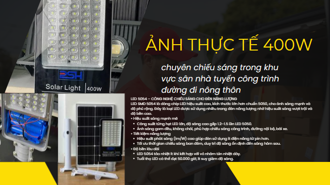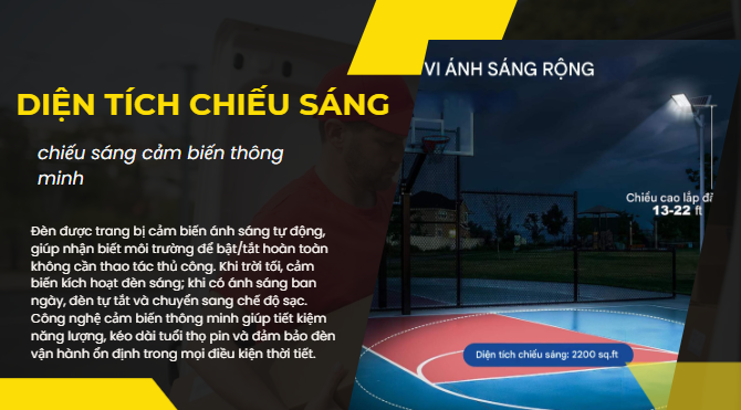 Nhờ chế độ tự động này, đèn giúp tiết kiệm tối đa năng lượng, kéo dài tuổi thọ pin và đảm bảo chiếu sáng hiệu quả suốt đêm. Công nghệ cảm biến ánh sáng đặc biệt phù hợp cho các khu vực công cộng, đường nông thôn, sân vườn, khu dân cư và các công trình không có điện lưới.