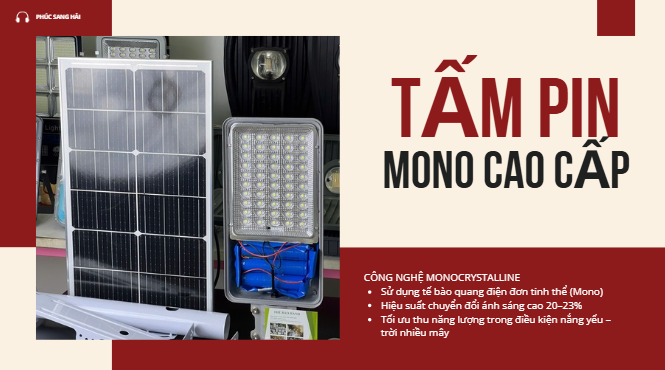 Đèn trang bị tấm Pin MONO chuyển đổi năng lượng tốt