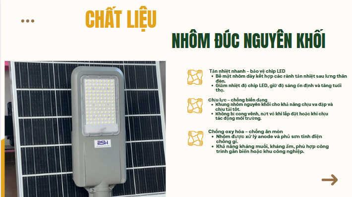 Nhờ chế độ tự động này, đèn giúp tiết kiệm tối đa năng lượng, kéo dài tuổi thọ pin và đảm bảo chiếu sáng hiệu quả suốt đêm. Công nghệ cảm biến ánh sáng đặc biệt phù hợp cho các khu vực công cộng, đường nông thôn, sân vườn, khu dân cư và các công trình không có điện lưới.