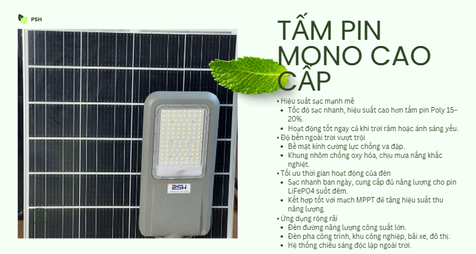 | Tấm Pin | Mono 18V/80W (hiệu suất chuyển đổi lên đến 21%) |