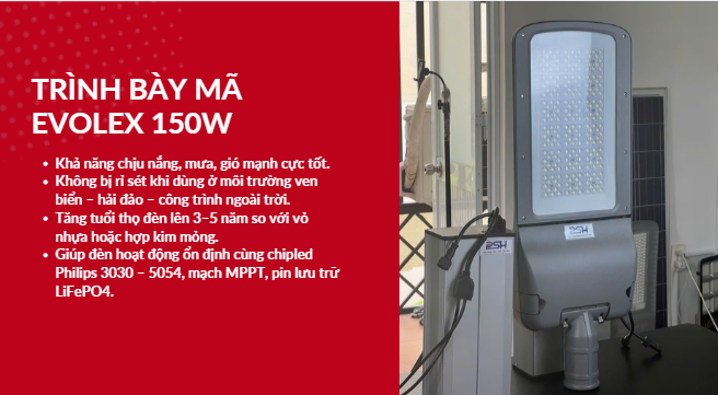 .Với thời lượng chiếu sáng vượt trội 2-3 ngày mưa sử dụng các bo mạch chuẩn thương hiệu,sạc xả nhanh chóng bảo vệ các thiết bị điện tử bên trong vô cùng tốt lên tới hàng chục năm. PSH không những là đơn vị cung cấp mã Đèn Công Trình Evolex 150W mà còn hàng trăm mã đèn mang đến các tuyến công trình vô cùng vượt trội , đẳng cấp tôn vinh giá trị đèn năng lượng cao áp 12,8v..24v..25,6v..