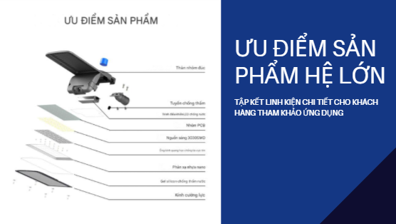 Thêm vào đó, mỗi Chip LED được trang bị thêm một thấu kính, giúp tăng diện tích chiếu sáng cho đèn. Đây là một yếu tố quan trọng đối với đèn đường, vì mặc dù đèn không sử dụng nhiều Chip LED, nhưng được cải thiện bằng các thấu kính khuếch đại, từ đó đảm bảo độ sáng vượt trội và tiết kiệm năng lượng một cách đáng kể.