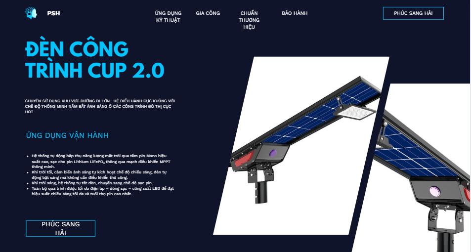 ĐÈN CÔNG TRÌNH LIỀN THỂ CUP 2024 100W năng lượng chống nước IP66 cao cấp, được thiết kế chuyên biệt cho các dự án quy mô lớn với các thông số kỹ thuật đạt chuẩn. Nhờ vào những ưu điểm vượt trội, sản phẩm này luôn được các chủ đầu tư và nhà thầu ưu tiên lựa chọn cho các dự án lớn.Với thời lượng chiếu sáng vượt trội 2-3 ngày mưa sử dụng các bo mạch chuẩn thương hiệu,sạc xả nhanh chóng bảo vệ các thiết bị điện tử bên trong vô cùng tốt lên tới hàng chục năm. PSH không những là đơn vị cung cấp mã ĐÈN CÔNG TRÌNH LIỀN THỂ CUP 2024 100W mà còn hàng trăm mã đèn mang đến các tuyến công trình vô cùng vượt trội , đẳng cấp tôn vinh giá trị đèn năng lượng cao áp 12,8v..24v..25,6v..