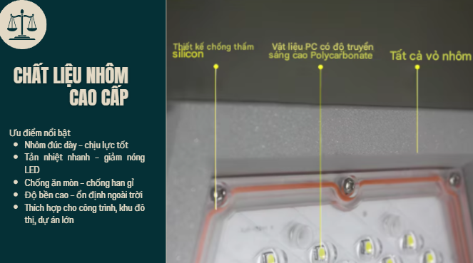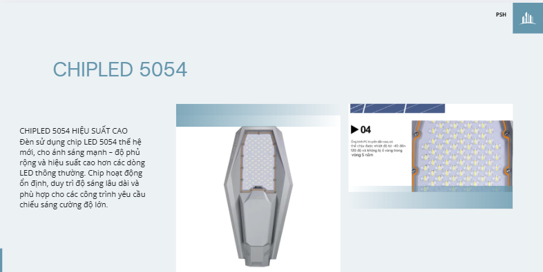 Chất lượng chiếu sáng xuất sắc: vượt trội về độ sáng so với các đèn khác trên thị trường, nhờ sử dụng chip LED cao cấp SMD 5054 và tuổi thọ lâu dài.