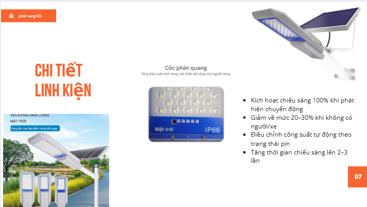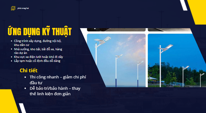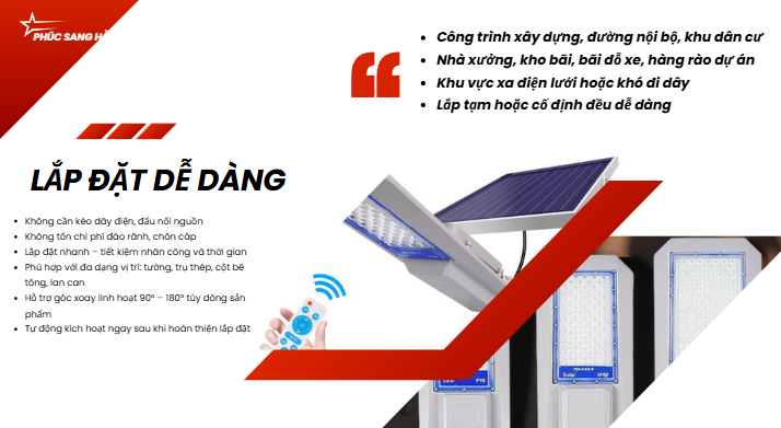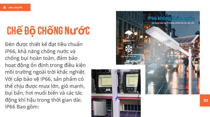 Nhờ chế độ tự động này, đèn giúp tiết kiệm tối đa năng lượng, kéo dài tuổi thọ pin và đảm bảo chiếu sáng hiệu quả suốt đêm. Công nghệ cảm biến ánh sáng đặc biệt phù hợp cho các khu vực công cộng, đường nông thôn, sân vườn, khu dân cư và các công trình không có điện lưới.