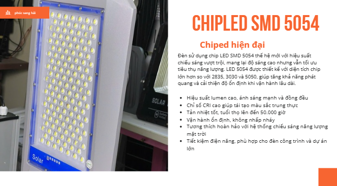 Chất lượng chiếu sáng xuất sắc: vượt trội về độ sáng so với các đèn khác trên thị trường, nhờ sử dụng chip LED cao cấp SMD 5054 và tuổi thọ lâu dài.