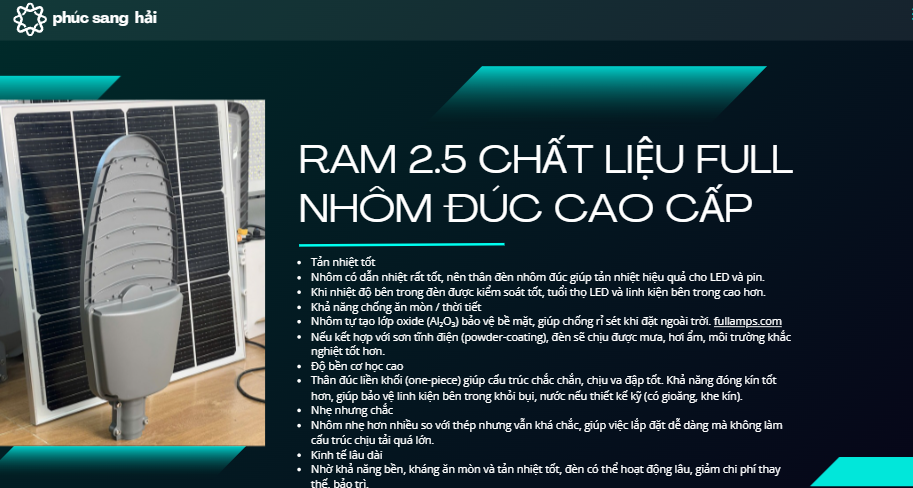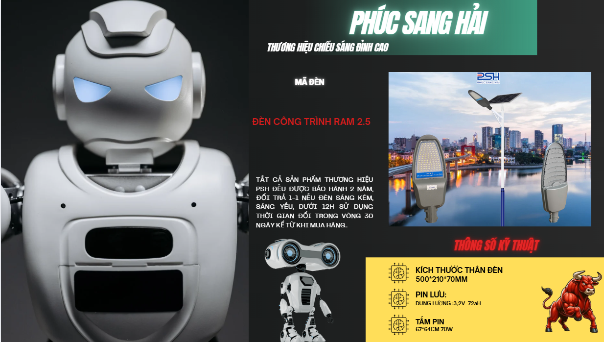 Như vậy, các ưu điểm của Đèn Công Trình Ram 2.5 500W không chỉ giới hạn ở chất lượng chiếu sáng xuất sắc, khả năng linh hoạt trong điều khiển và tính năng tự động. Nó còn giúp tiết kiệm năng lượng và tài nguyên thông qua sử dụng năng lượng mặt trời, đồng thời hiệu quả trong việc giảm thiểu ô nhiễm và đóng góp tích cực vào việc bảo vệ môi trường.