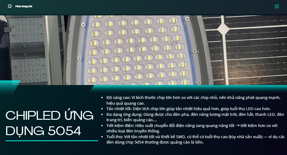 Chất lượng chiếu sáng xuất sắc: vượt trội về độ sáng so với các đèn khác trên thị trường, nhờ sử dụng chip LED cao cấp SMD 5054 và tuổi thọ lâu dài.