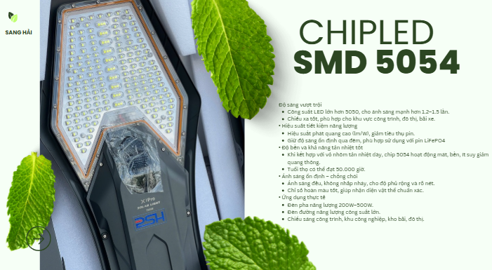 Chất lượng chiếu sáng xuất sắc: vượt trội về độ sáng so với các đèn khác trên thị trường, nhờ sử dụng chip LED cao cấp SMD 5054 và tuổi thọ lâu dài.