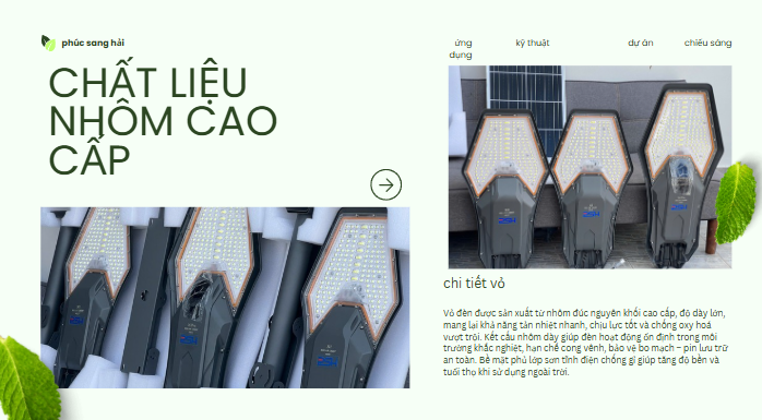 Nhờ chế độ tự động này, đèn giúp tiết kiệm tối đa năng lượng, kéo dài tuổi thọ pin và đảm bảo chiếu sáng hiệu quả suốt đêm. Công nghệ cảm biến ánh sáng đặc biệt phù hợp cho các khu vực công cộng, đường nông thôn, sân vườn, khu dân cư và các công trình không có điện lưới.