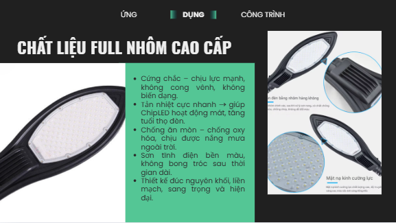 Thân đèn làm bằng hợp kim nhôm đúc cực kỳ chắc chắn