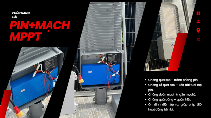 Tối ưu quá trình sạc: Bộ mạch tích hợp công nghệ MPPT (Maximum Power Point Tracking), cho phép tự động điều chỉnh và tối ưu dòng sạc theo thời gian thực, khai thác tối đa công suất từ tấm pin năng lượng mặt trời.