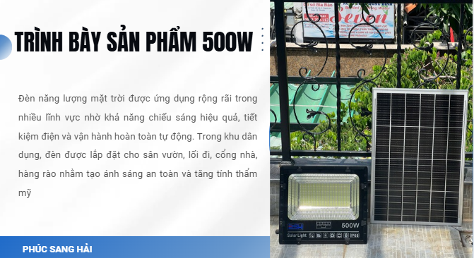 Như vậy, các ưu điểm của ĐÈN PHA PSH 500W PRO không chỉ giới hạn ở chất lượng chiếu sáng xuất sắc, khả năng linh hoạt trong điều khiển và tính năng tự động. Nó còn giúp tiết kiệm năng lượng và tài nguyên thông qua sử dụng năng lượng mặt trời, đồng thời hiệu quả trong việc giảm thiểu ô nhiễm và đóng góp tích cực vào việc bảo vệ môi trường.
