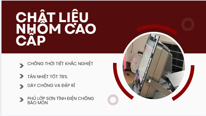 Là một thành phần quan trọng trong bộ ĐÈN PHA PSH 500W BẢN NÂNG CẤP, tấm pin năng lượng mặt trời được nhập khẩu theo tiêu chuẩn chất lượng cao và trải qua quy trình kiểm định chặt chẽ. Tấm pin năng lượng mặt trời này đóng vai trò quan trọng trong việc cung cấp điện cho bộ đèn, đảm bảo tuổi thọ của cả bộ đèn và pin lithium lưu trữ.