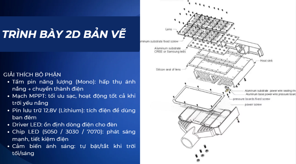Thêm vào đó, mỗi Chip LED được trang bị thêm một thấu kính, giúp tăng diện tích chiếu sáng cho đèn. Đây là một yếu tố quan trọng đối với đèn đường, vì mặc dù đèn không sử dụng nhiều Chip LED, nhưng được cải thiện bằng các thấu kính khuếch đại, từ đó đảm bảo độ sáng vượt trội và tiết kiệm năng lượng một cách đáng kể.
