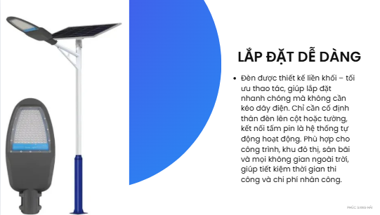 Nhờ chế độ tự động này, đèn giúp tiết kiệm tối đa năng lượng, kéo dài tuổi thọ pin và đảm bảo chiếu sáng hiệu quả suốt đêm. Công nghệ cảm biến ánh sáng đặc biệt phù hợp cho các khu vực công cộng, đường nông thôn, sân vườn, khu dân cư và các công trình không có điện lưới.