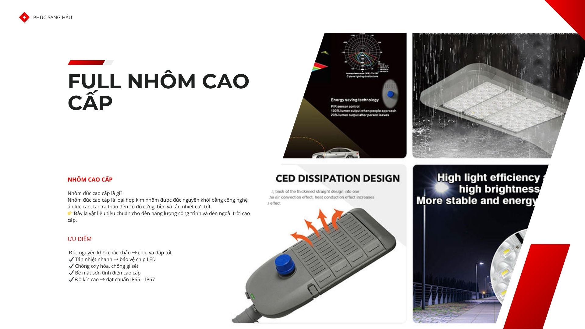 Thêm vào đó, mỗi Chip LED được trang bị thêm một thấu kính, giúp tăng diện tích chiếu sáng cho đèn. Đây là một yếu tố quan trọng đối với đèn đường, vì mặc dù đèn không sử dụng nhiều Chip LED, nhưng được cải thiện bằng các thấu kính khuếch đại, từ đó đảm bảo độ sáng vượt trội và tiết kiệm năng lượng một cách đáng kể.
