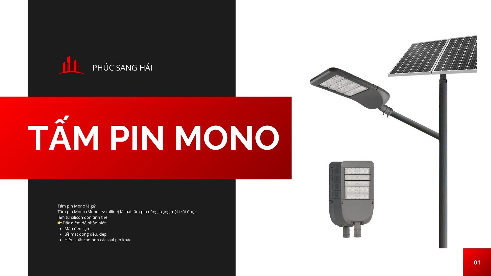 Đèn sử dụng tấm Pin Mono 18V/ 120W - loại pin cao cấp có hiệu suất hấp thụ ánh sáng tốt hơn so với pin Poly thông thường (hiệu suất chuyển đổi lên đến 22%). Điều này mang lại sự tiện lợi và phù hợp cho việc lắp đặt, đặc biệt là ở những vùng ít ánh nắng mặt trời, trong thời tiết mưa bão, trời âm u hay có nhiều mây. Đảm bảo rằng đèn sẽ vẫn hoạt động tốt trong mọi điều kiện thời tiết khác nhau.