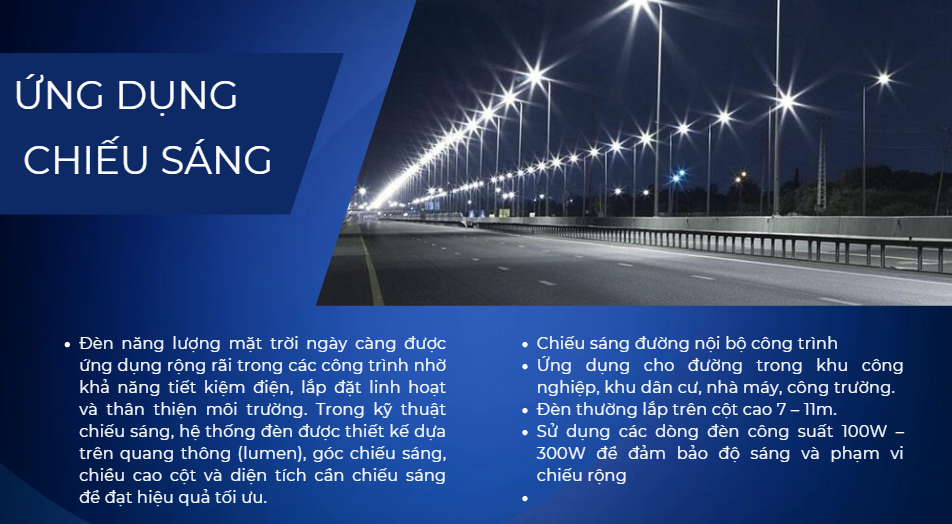 Đáp ứng nhu cầu chiếu sáng trong khu du lịch và nhiều ứng dụng khác.