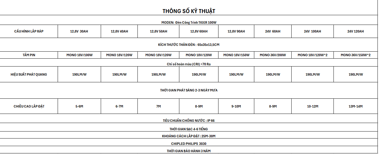 .Với thời lượng chiếu sáng vượt trội 2-3 ngày mưa sử dụng các bo mạch chuẩn thương hiệu,sạc xả nhanh chóng bảo vệ các thiết bị điện tử bên trong vô cùng tốt lên tới hàng chục năm. PSH không những là đơn vị cung cấp mã Đèn Công Trình Philips Tiger 100W mà còn hàng trăm mã đèn mang đến các tuyến công trình vô cùng vượt trội , đẳng cấp tôn vinh giá trị đèn năng lượng cao áp 12,8v..24v..25,6v..